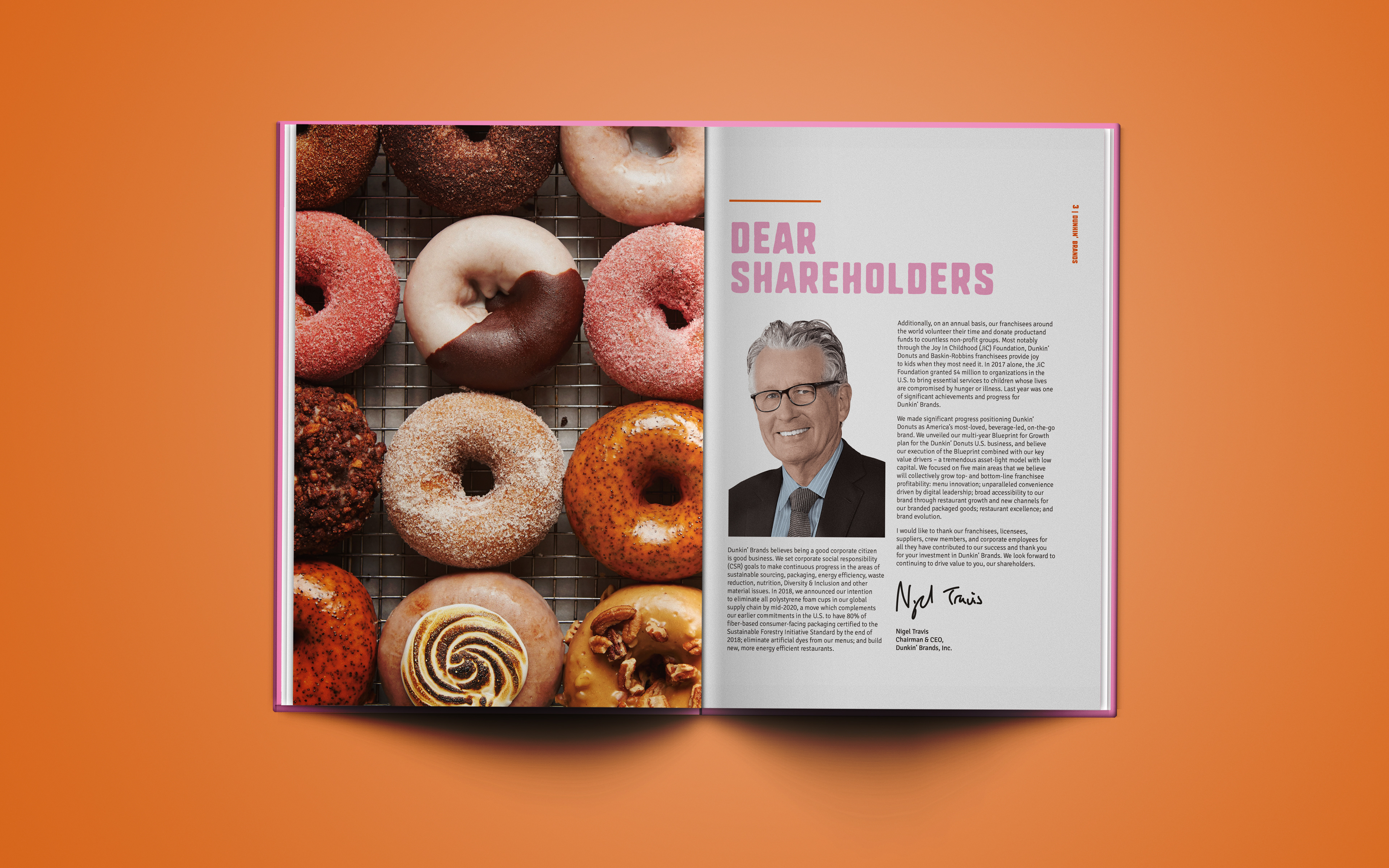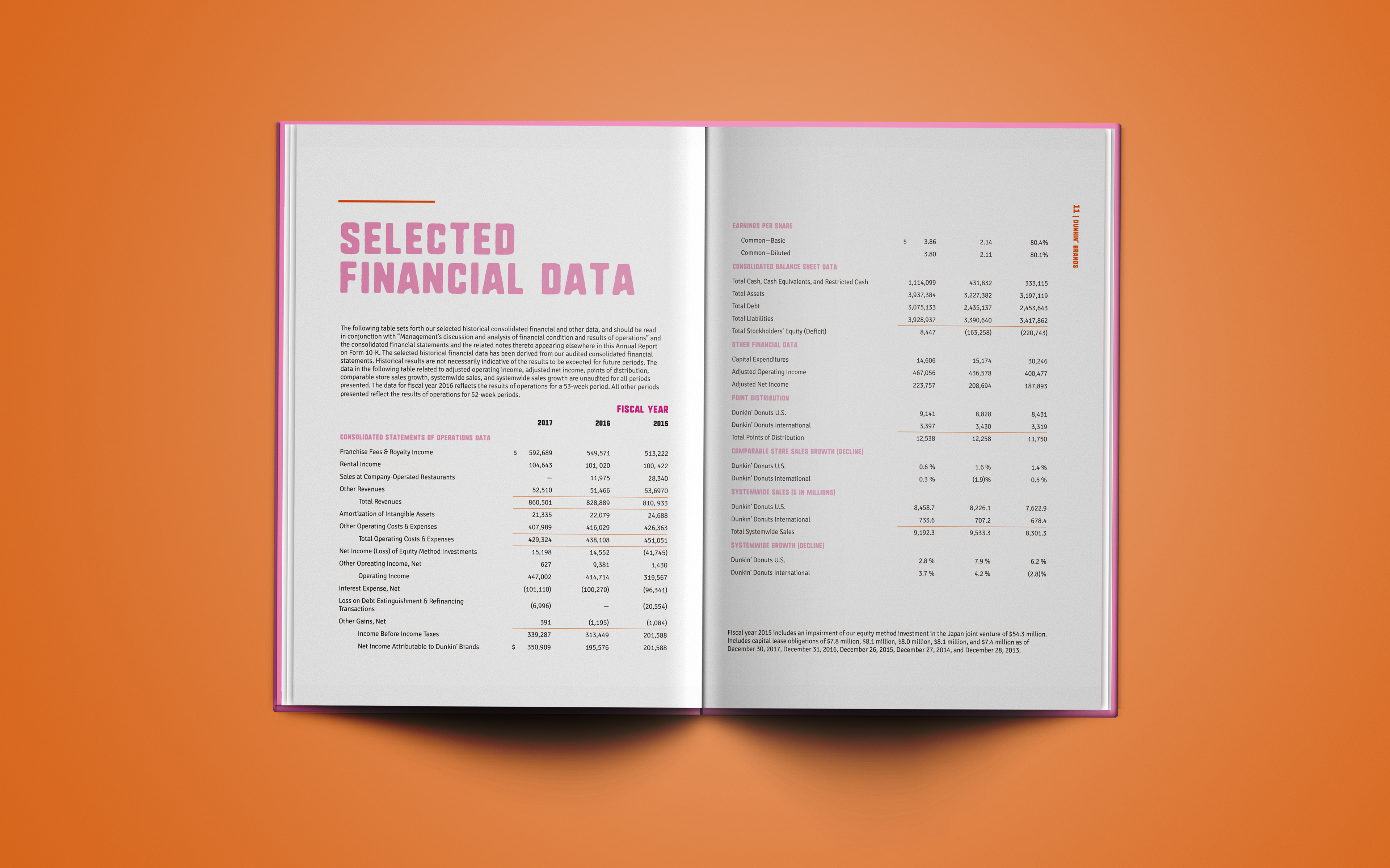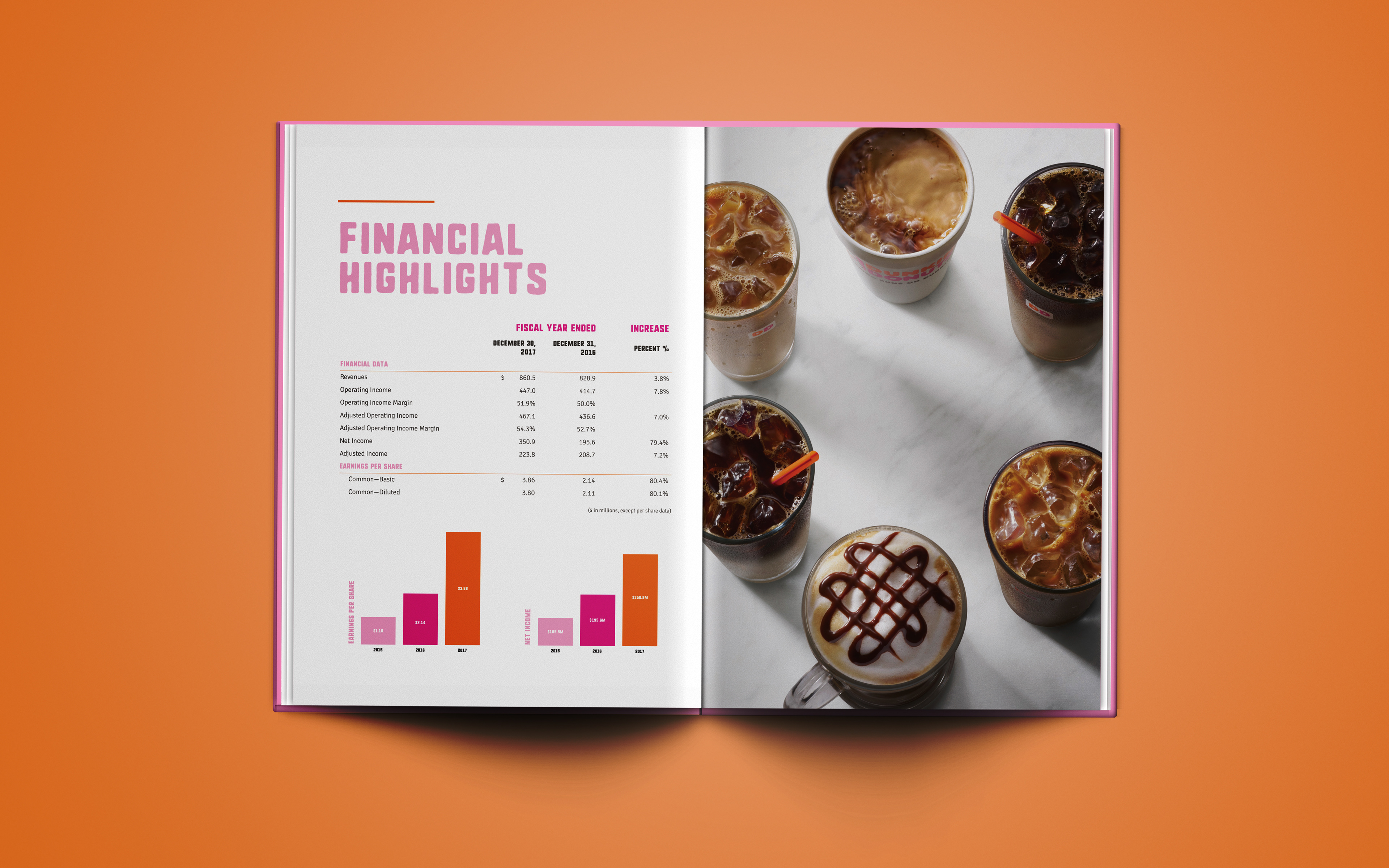 A redesign of Dunkin' Brands Annual Report for 2017.